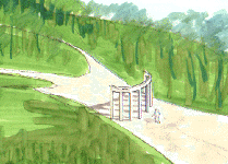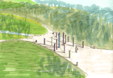 La "porta d'uscita" segnala la conclusione del percorso, e, come la porta d'entrata, costituisce un filtro tra interno ed esterno del parco.