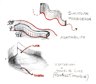 Percorsi fluidi, accentuati sopratutto negli ambiti d'accesso, della "soglia". |
