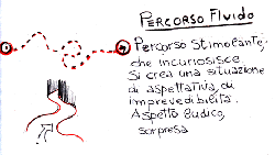 I percorsi devono essere agevoli, ma non banali, devono stimolare la fantasia, la curiosità, la ricerca. Non devono essere rigidi nè rispettare alcuna cortina. La fluidità và intesa come elemento più vicino alla natura, quasi un fiume che scorra creando il proprio letto col passare degli anni, rimanendo fluido e continuo, nonostante gli ostacoli trovati sul cammino.